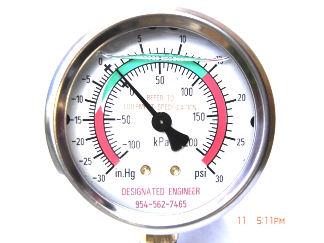 0-30Hg 0-15 PSI STAINLESS STEEL CASE